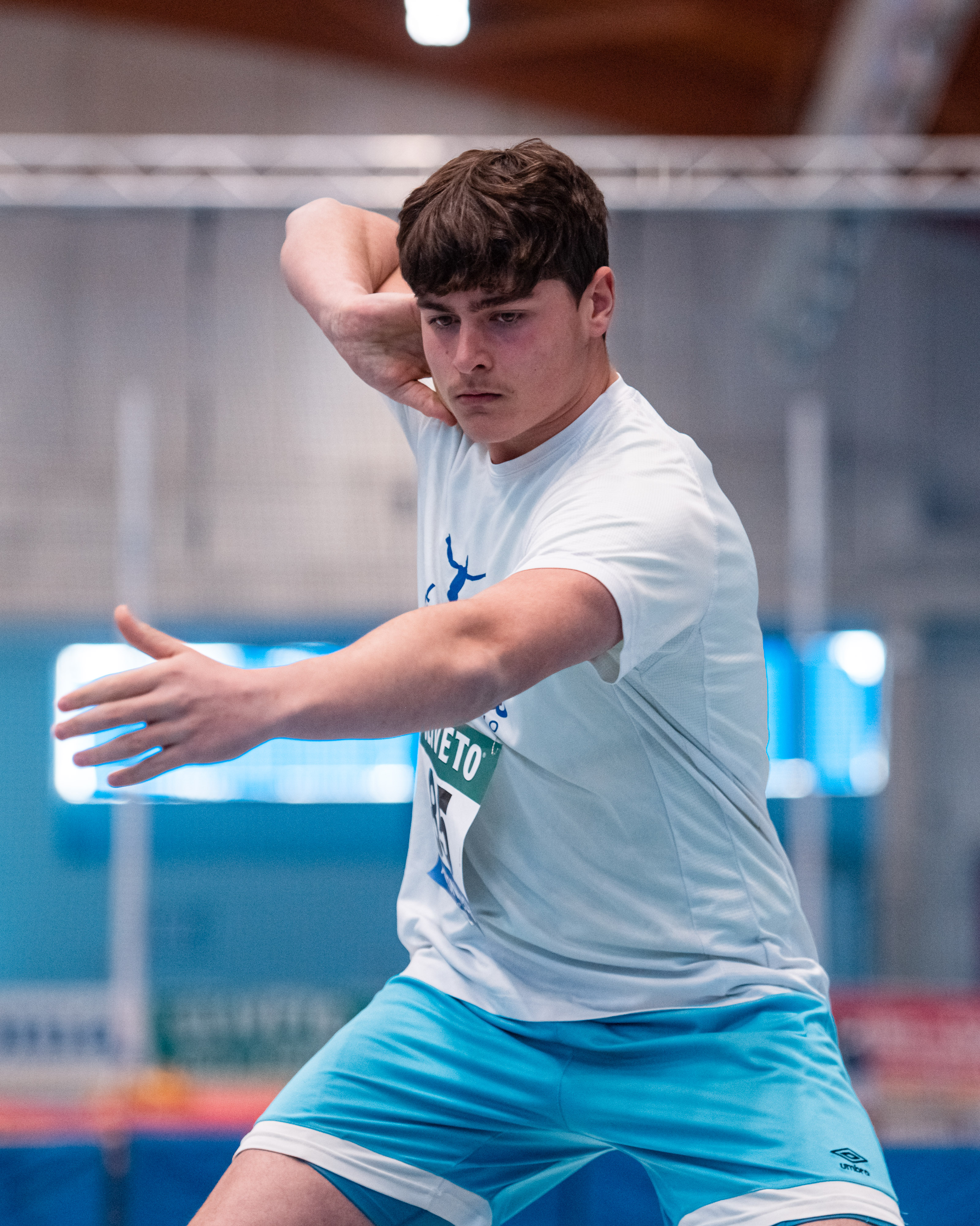 11 Febbraio 2023Un lancio d'oro. Mattia Pasquetti conferma i favori del pronostico e conquista la medaglia d'oro ai campionati italiani allievi nel getto del peso. Ma ad Ancona l'Umbria può festeggiare anche su altri piazzamenti da finale a cominciare da quello del compagno di squadra Augusto Cecchetti, quinto nella stessa gara. Nei migliori otto anche Francesco Patumi quarto nel salto in lungo, e la velocista Linda Uguccioni.
